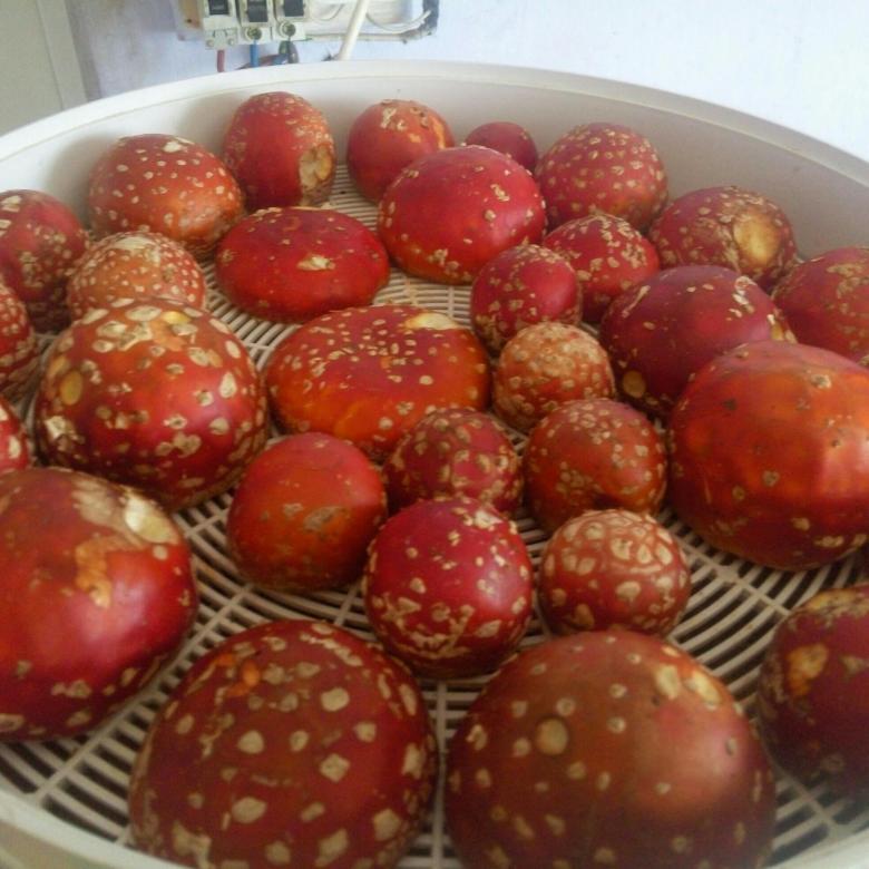 Можно ли есть мухоморы? Да, можно, но только после просушки, выдержки хотя бы 2-3 недели, и естественно нужно соблюдать дозировки. При дозировках более 5 гр Красного Мухомора, вызывает опьянение, а более 15 гр может вызывать трип, галлюцинации. Пантерный Мухомор в 5-6 раз мощнее Красного, 3 гр вызывают опьянение и предтриповое состояние. Рекомендуем принимать Мухомор только для микродозинга!